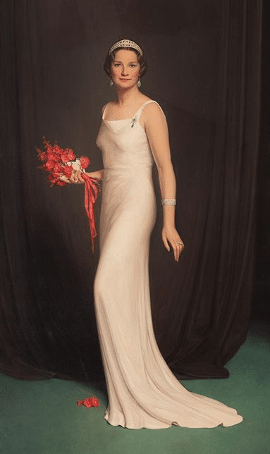 En een schilderij, door kunstschilders Damien en Rutten. We zien Astrid in een avondjurk en met een diadeem.