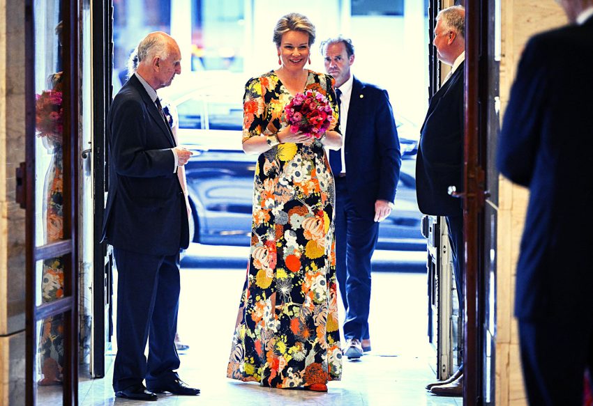 Koningin Mathilde is een plaatje in een lange jurk met bloemenmotief die ze al jaren niet meer uit de kast had gehaald.