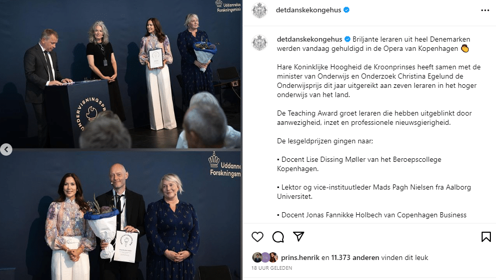 Mary steelt vaak de show met haar modekeuzes. Een goede broek doet wonderen. Zeker gecombineerd met een mooie riem en toffe top. Tijdens het uitreiken van de Onderwijsprijzen in Denemarken droeg ze een broek waar waarschijnlijk menig zomervliegje zich daar aangetrokken voelde: hij was spierwit.