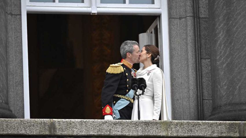 Kort nadat koningin Margrethe haar abdicatieverklaring had ondertekend, waardoor haar zoon de nieuwe monarch werd, riep de premier van het land Frederik uit tot koning op het balkon van het Christiansborg Kasteel. Daar deelde het nieuwe koningspaar een romantische zoen.