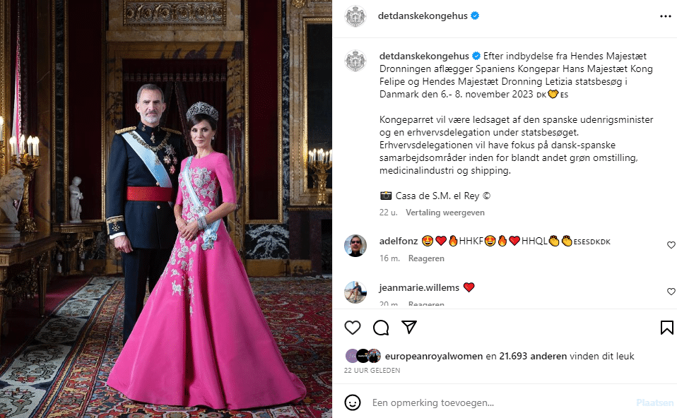 In november is het zover, kondigen de Denen aan op Instagram: dan komen Letizia en Felipe een bezoek brengen aan Denemarken. Lees er hier meer over.