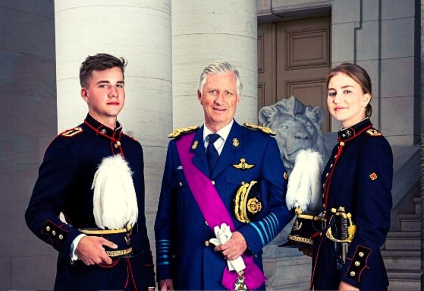 Prinses Elisabeth, prins Gabriël en koning Filip in galauniform, dat is zeker een foto die je wilt delen.