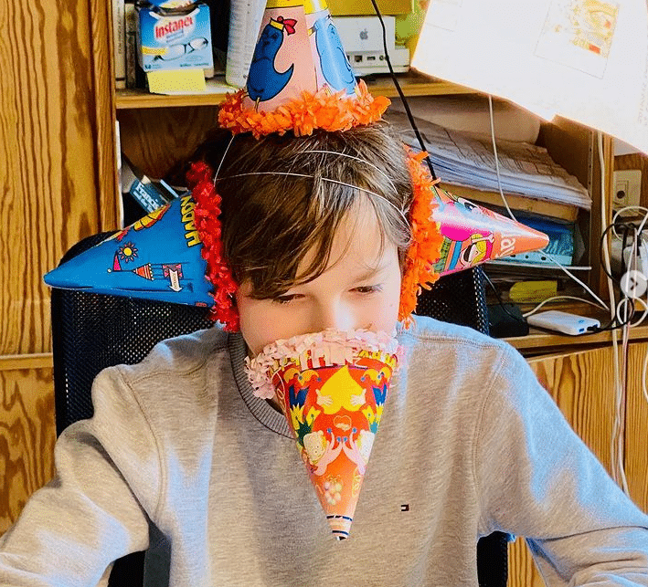 Toen zoon Oscar zijn ‘lockdown-verjaardag’ vierde, kregen we meteen een kijkje in de computerkamer. Hij vierde zijn feestje deels digitaal. Fijn hoor, dat er ook bij Delphine thuis gewóón rommeltjes in de kast te vinden zijn.