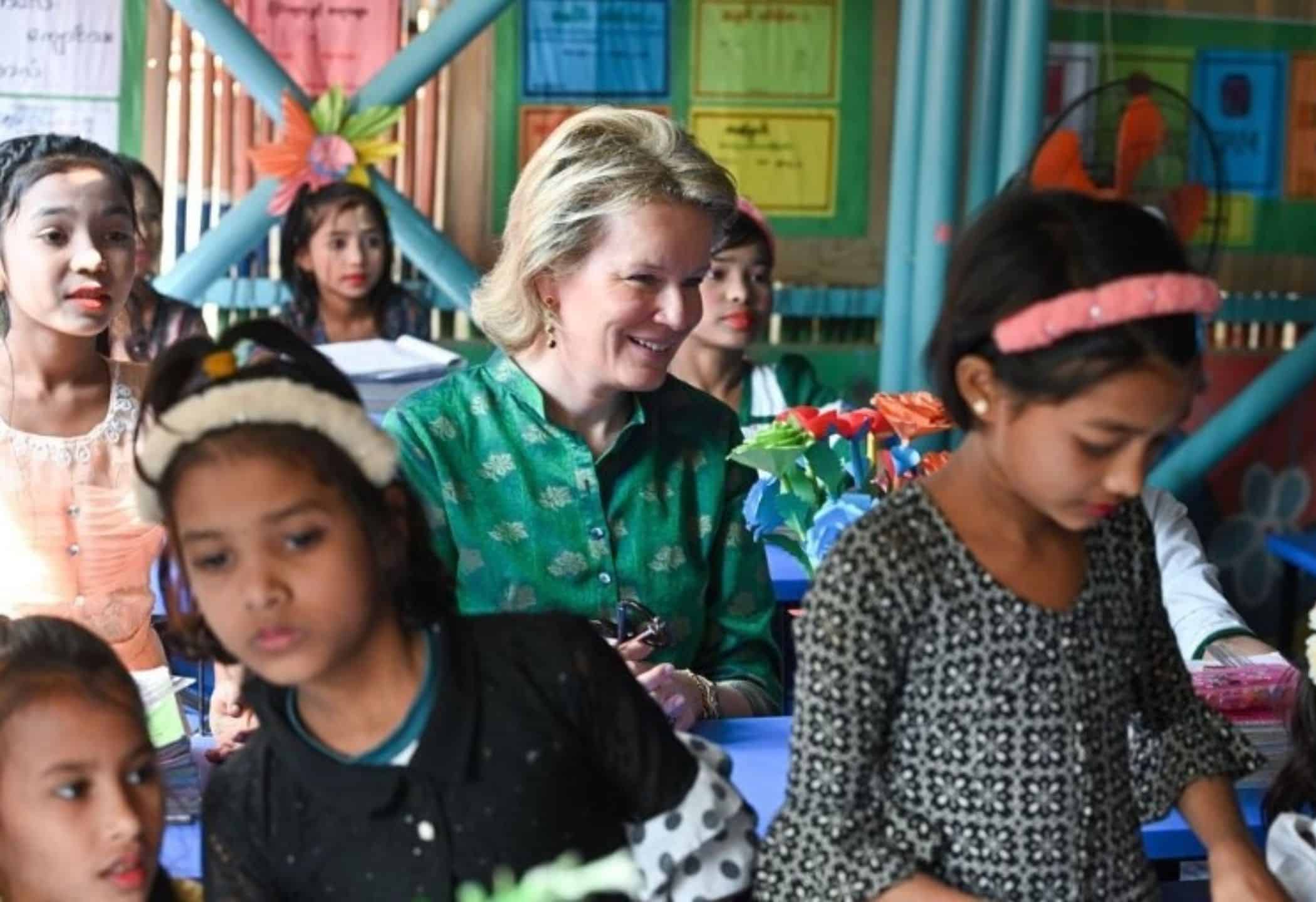 Koningin Mathilde houdt het simpel en stijlvol, bij een bezoek aan het grootste vluchtelingenkamp ter wereld.