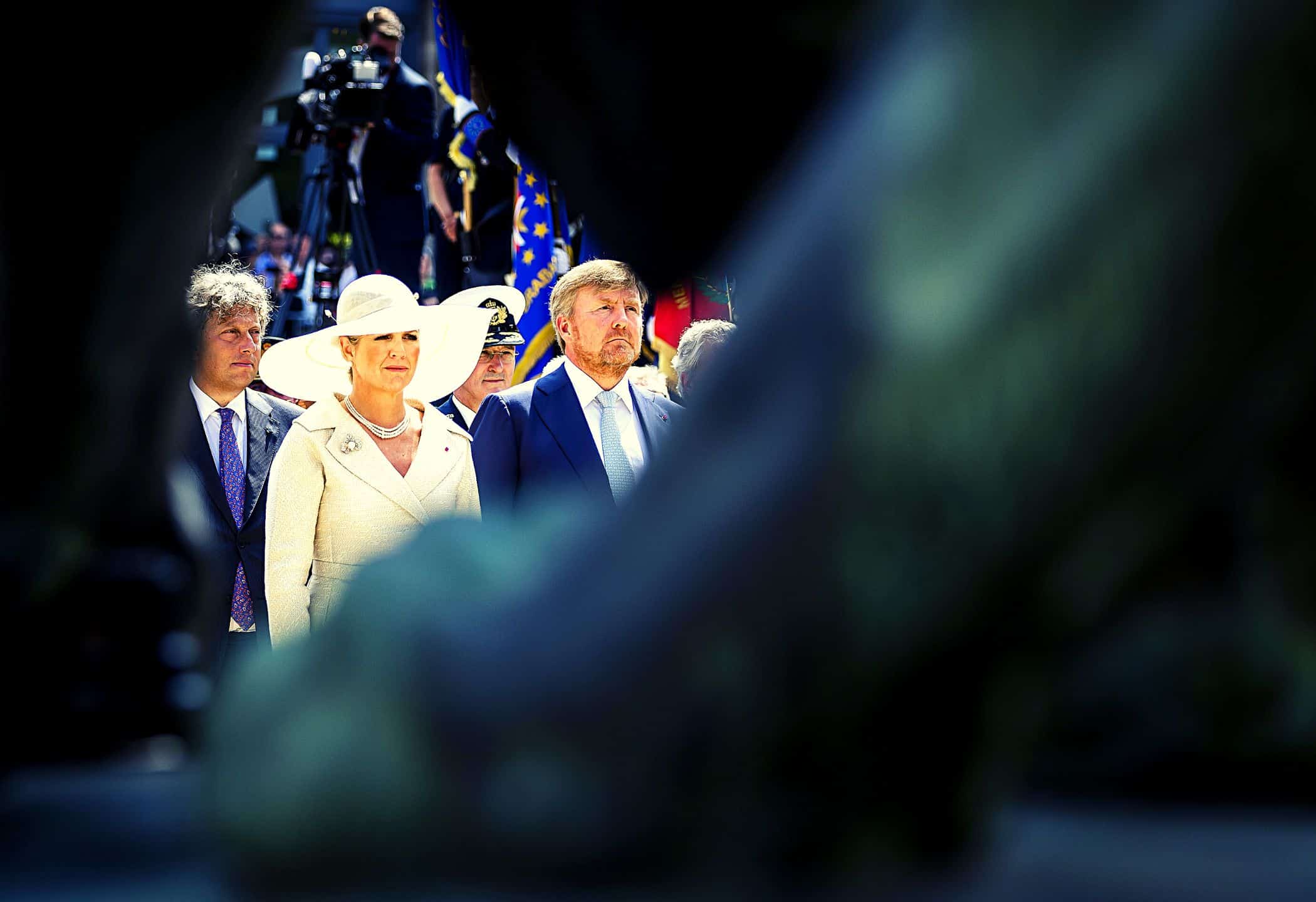 Koning Willem-Alexander en koningin Máxima hebben dinsdag een krans gelegd bij het Graf van de Onbekende Soldaat Koning in Brussel.