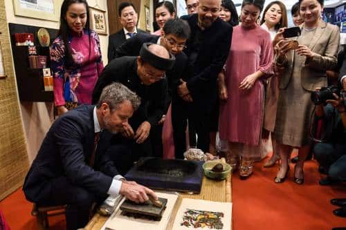 Tijdens zijn bezoek aan Vietnam maakte hij in Hanoi een traditoneel kunstwerk, met de hulp van een lokale kunstenaar.
