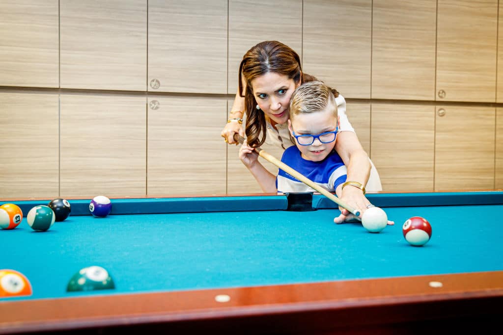 Toen ze een poolafel spotte was ze niet te houden. Kijk die fanatieke blik!
