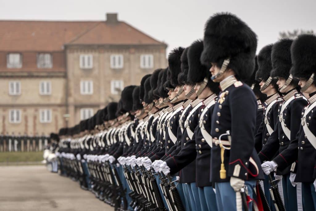 Al sinds 1658 bewaken lijfwachten de paleizen van de Deense koninklijke familie. In een traditioneel uniform houden ze dag en nacht de wacht, waaronder bij Amalienborg in Kopenhagen. Hier wonen koning Frederik en zijn gezin. Ook koningin Margrethe woont hier in een afzonderlijk paleis.