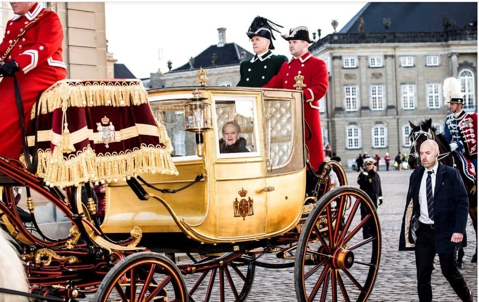 Ter gelegenheid van het nieuwjaarsfeest voor officieren van Defensie en andere genodigden zal woensdag koningin Margrethe door een regiment Huzaren in een gouden koets worden geëscorteerd van Amalienborg naar Paleis Christiansborg en terug.