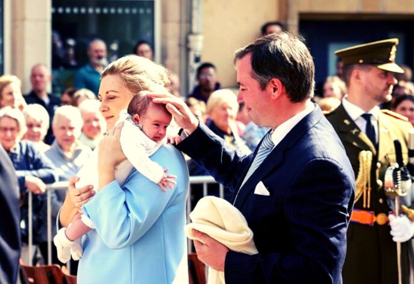 De jongste Luxemburgse royal nam deel aan een processie in de hoofdstad, in de armen van moeder Stéphanie.
