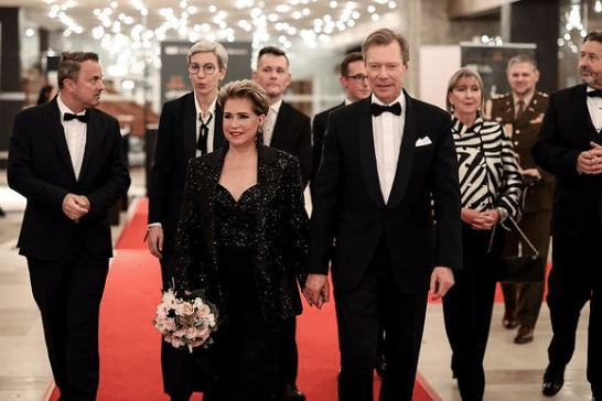Zo’n gelegenheid roept natuurlijk om passende kleding. Waarschijnlijk stond op de uitnodiging ‘black tie’. We zien Henri in zwart kostuum, met een witte pochet, wit overhemd en zwarte vlinderdas. María Teresa heeft een zwarte rok aan met glittertop erboven. En een jasje in dezelfde kleur en glitter als de top. Op één van de gedeelde foto’s van het event zien we de twee hand in hand over de rode loper lopen. Leuk!