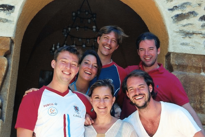 Guillaume, Félix, Louis, Alexandra en Sébastien. De 4 zoons en dochter van María Teresa poseren lachend met hun moeder, die duidelijk een paar kopjes kleiner is dan haar kroost. Erg leuke foto!