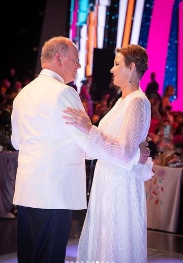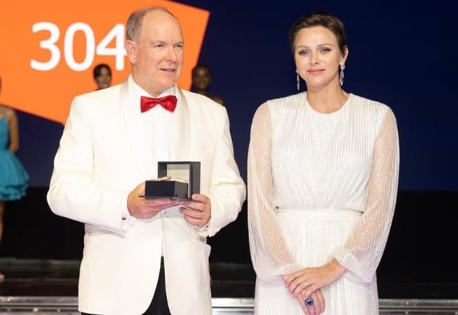 Een detail aan de sprankelende en verrukkelijke outfit die prinses Charlène droeg was wel heel erg tekenend.