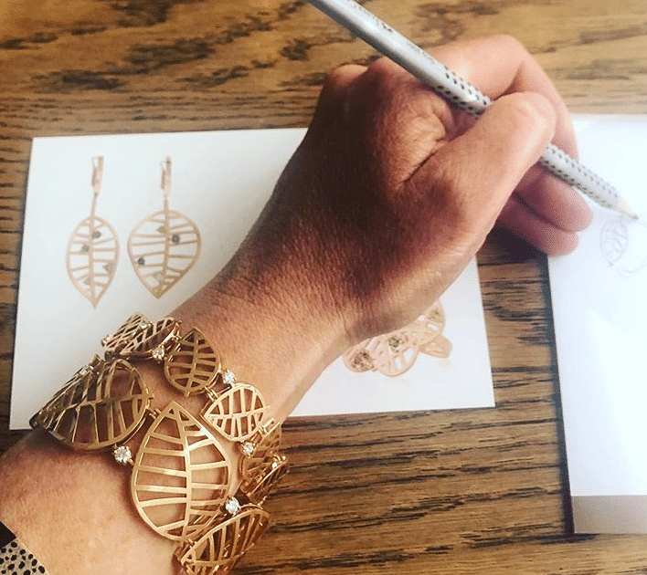 De mooie armband, waarbij ze oorbellen ontwerpt die ook onzichtbaar sluiten.