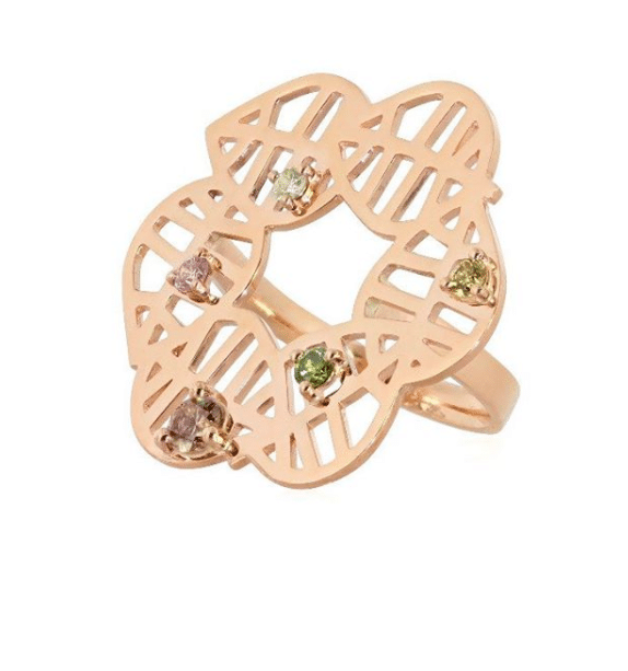 En we love deze ring, in bloemvorm met zcht-gekleurde steentjes. Zie jij jezelf ook wel zoiets dragen?