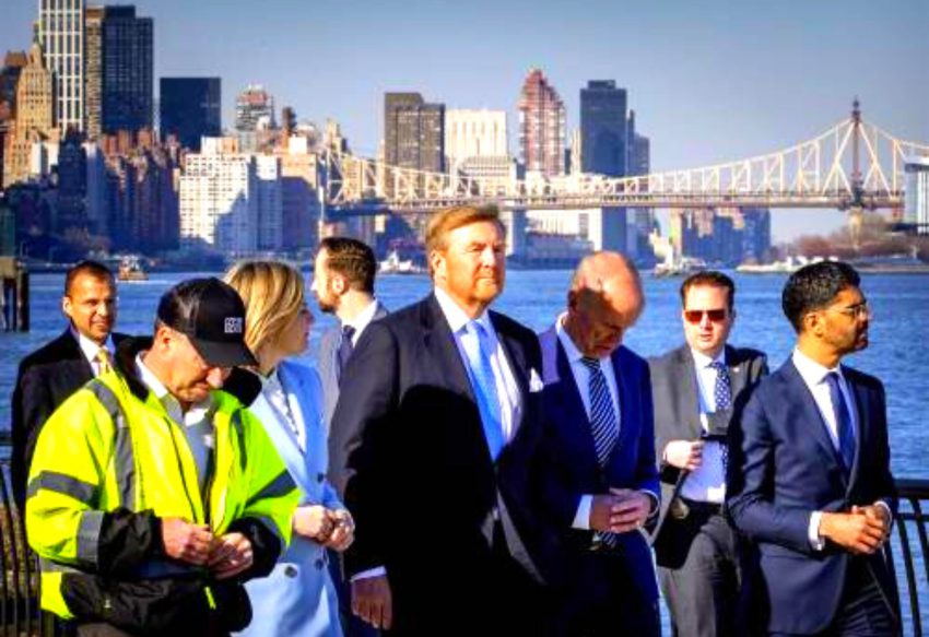 Eerder dinsdag kreeg de koning een rondleiding langs een nieuw aan te leggen waterkering. De stad New York werd in 2012 hard geraakt door orkaan Sandy. Straten stonden onder water en veel mensen raakten opgesloten in hun huis. Daarom wordt nu een grote waterkering gebouwd.
