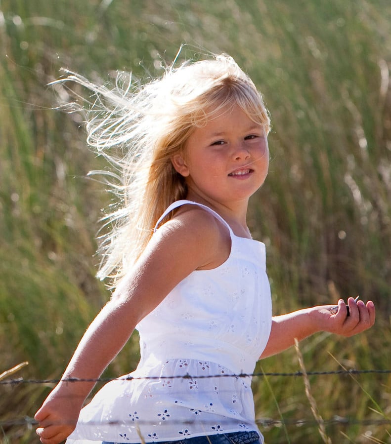 Een sprongetje vooruit. Amalia in 2009, lekker uitwaaien aan de kust. En aan dat gevulde handje te zien, heeft ze een paar mooie schelpen gevonden.