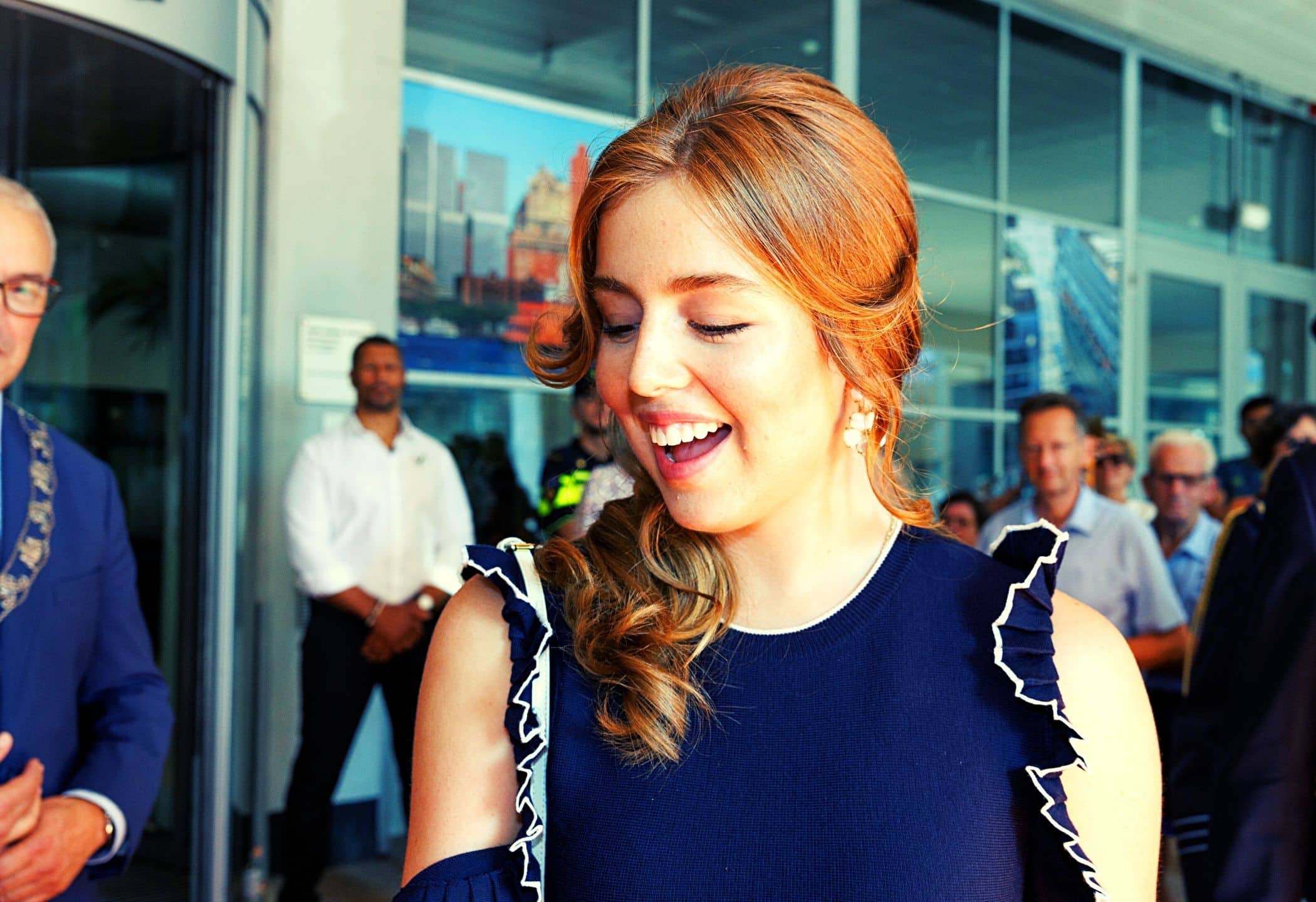 Hard op weg een stijlicoon te worden. Middelste dochter Alexia doopte een baggerschip dat haar naam draagt, in Rotterdam. Dat was meteen haar eerste solo-optreden. En alles verliep gelukkig goed. Naast het enorme schip, de ceremonie en natuurlijk de stralende zon, viel nog iets op: Alexia’s jurk.