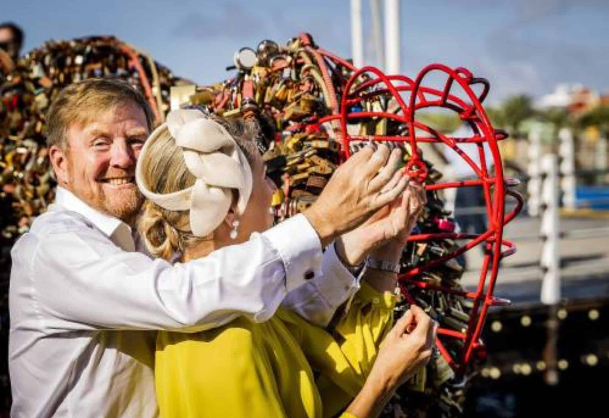 Het jubileum werd op 2 februari aan het begin van de dag op Curaçao bezegeld met een liefdesslotje in de wijk Punda, de oudste wijk van Willemstad. Op de Handelskade, bekend van de kleurrijke gebouwen, staan twee grote harten waar liefdesslotjes aan gehangen kunnen worden. Een van de harten was eerder leeggemaakt, speciaal voor dat van het koningspaar. De koningin zei tijdens het persgesprek dat ze de actie van haar man een ‘beetje verrassend’ vond.