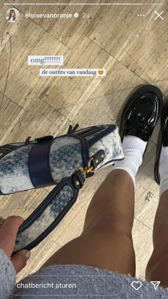 De preppy loafers, wellicht zijn het lage Dr. Martens, hebben we al eens eerder voorbij zien komen bij Eloise. Als jonge fashionista weet ze natuurlijk heel goed wat er leeft en wat lekker matcht. Vandaag kiest Eloise voor een superkorte lichtgrijze, wollige jurk – al kan het ook een oversized trui zijn. Het al even preppy ogende tasje en de witte sportsokken maken haar #ootd helemaal af. We like! En Eloise zelf ook, want zoveel uitroeptekens laten zich alleen maar vertalen als enthousiasme.