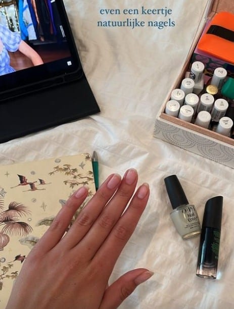 Nu heeft ze (voorlopig?) afscheid genomen van haar gekleurde nagels, schrijft ze op haar Instagram Stories: