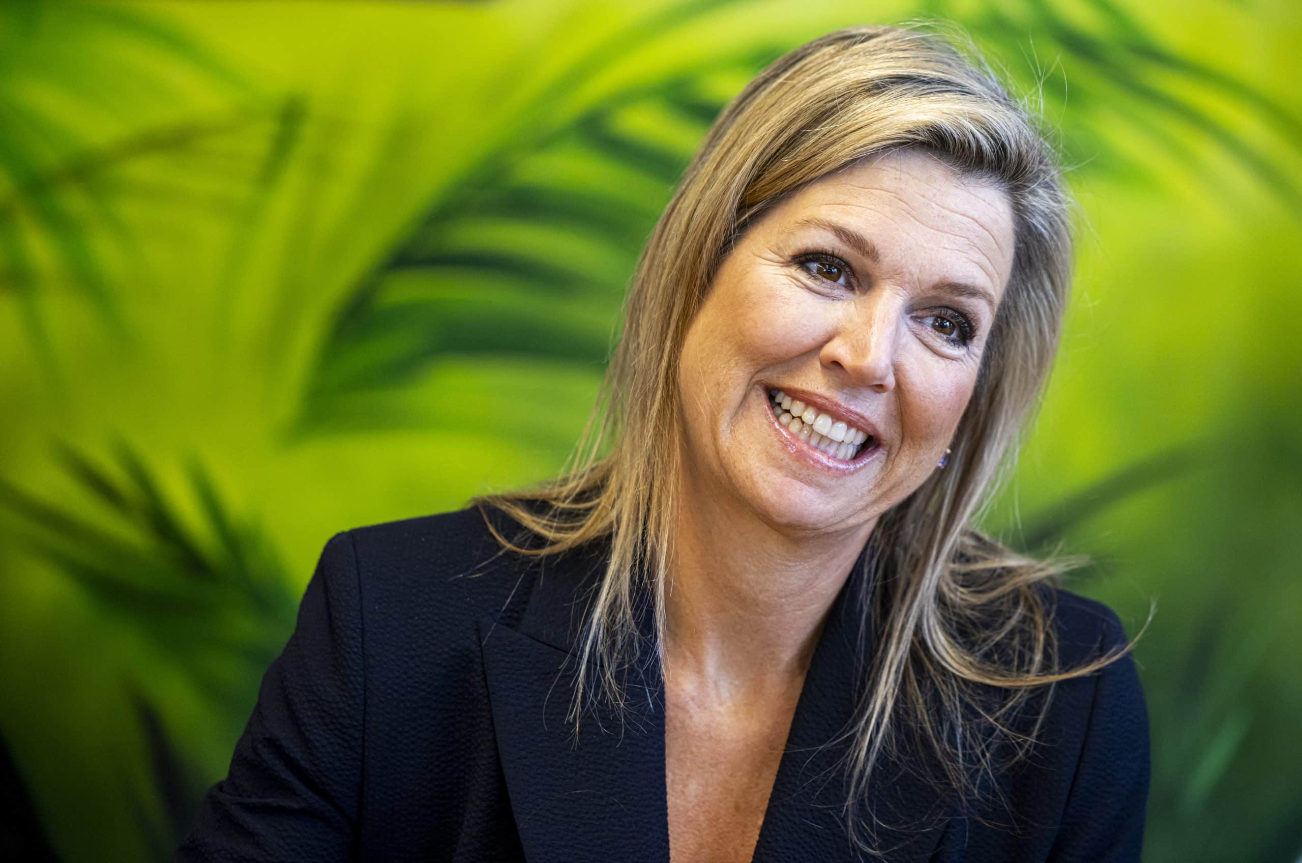 Koningin Máxima neemt deel aan het 10-jarig jubileum van Stichting Taal aan Zee, die Nederlandse taallessen aanbiedt voor vrouwen die een andere taal spreken, vluchtelingen en asielzoekers, op 24 april 2024 in Den Haag.