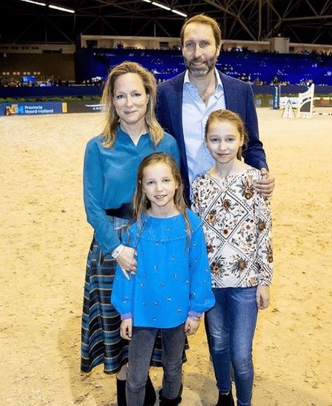 Naast sieraden ontwerpen heeft ze nog een enorme passie: de springsport. Ze is bestuurslid van Jumping Amsterdam, een springruiterevenement. Hier zie je haar tijdens Jumping Amsterdam, mét man en dochters. Mooi familiekiekje!