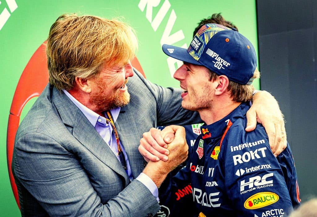 Verstappen en de dasloze koning Willem-Alexander kennen elkaar al wat langer. Willem-Alexander volgt de loopbaan van de kampioen op de voet en heeft hem vorig jaar geridderd. Verstappen was daar zee van onder de indruk.