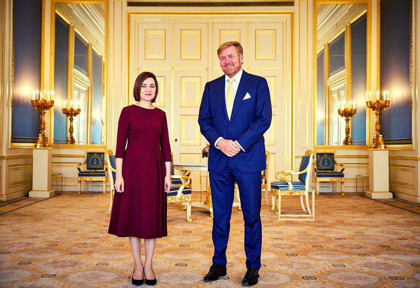 Koning Willem-Alexander heeft maandag president Maia Sandu ontvangen op paleis Noordeinde