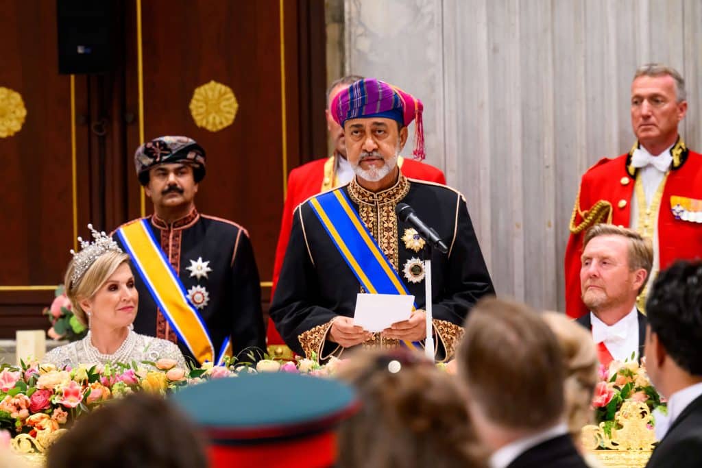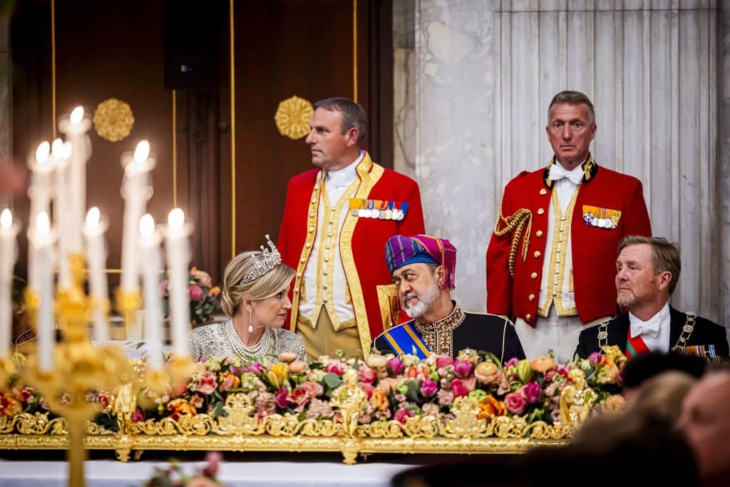 Koningspaar en prinses Amalia heten sultan van Oman welkom met staatsbanket