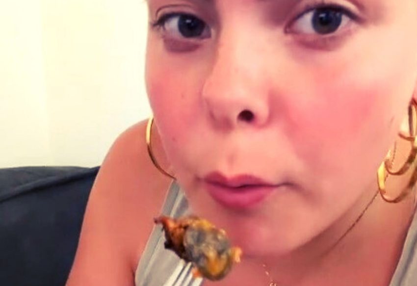 Eloise was zo lief om het recept te delen via TikTok. Dat wil zeggen: we zie en haar koken en eten. Een traybake met lekker veel groenten in olijfolie – tomaten, courgette, pepers, ui – die je zo de oven inschuift. Gekleurde pastaschelpjes. Kook de pasta. Bak intussen reepjes kipfilet met olie en kruiden. Serveer met geraspte kaas.