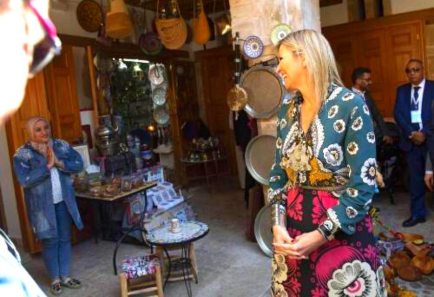 Koningin Máxima is op de tweede dag van haar driedaagse VN-bezoek aan Marokko het oude centrum van Rabat ingegaan. Ze bezocht daar verschillende kleine ondernemers.