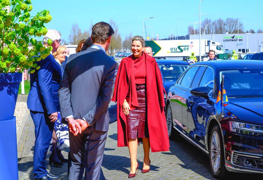 Koningin Máxima was zeer stijlvol in het Overijsselse Raalte, bij een bezoek aan een koninklijke prijswinnaar.