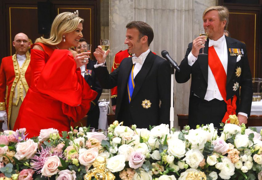 De Franse president richtte tijdens het galabanket enkele woorden in het Nederlands tot Willem –Alexander.