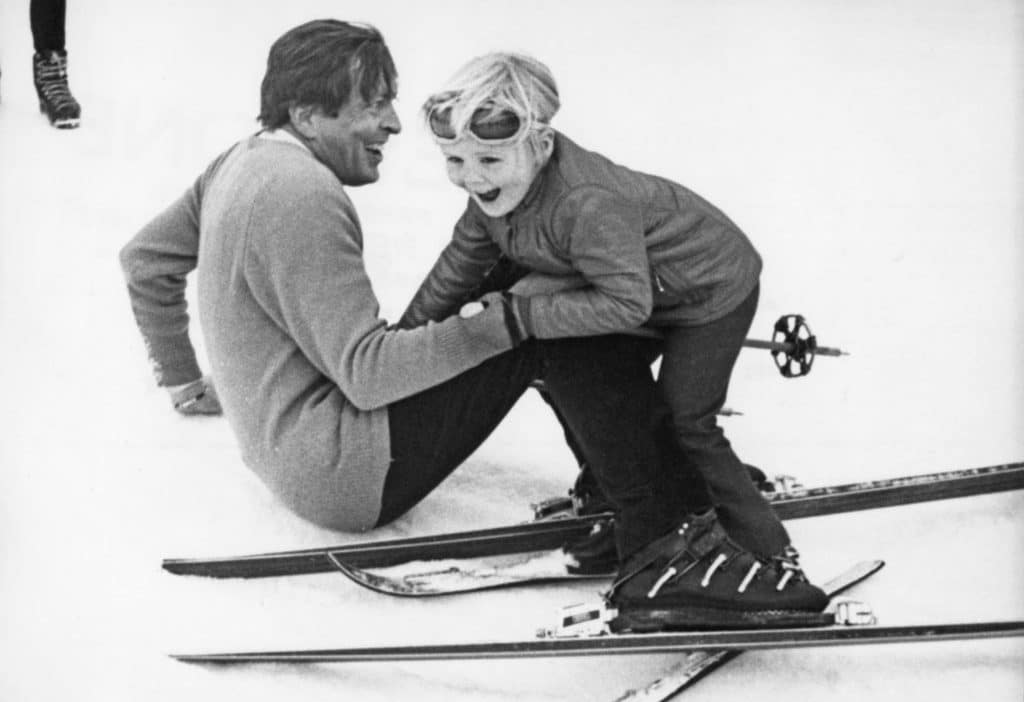 Ook Willem-Alexander zal fijne herinneringen hebben aan zijn grootmoeder in de sneeuw. Hieronder is hij te zien met zijn vader.