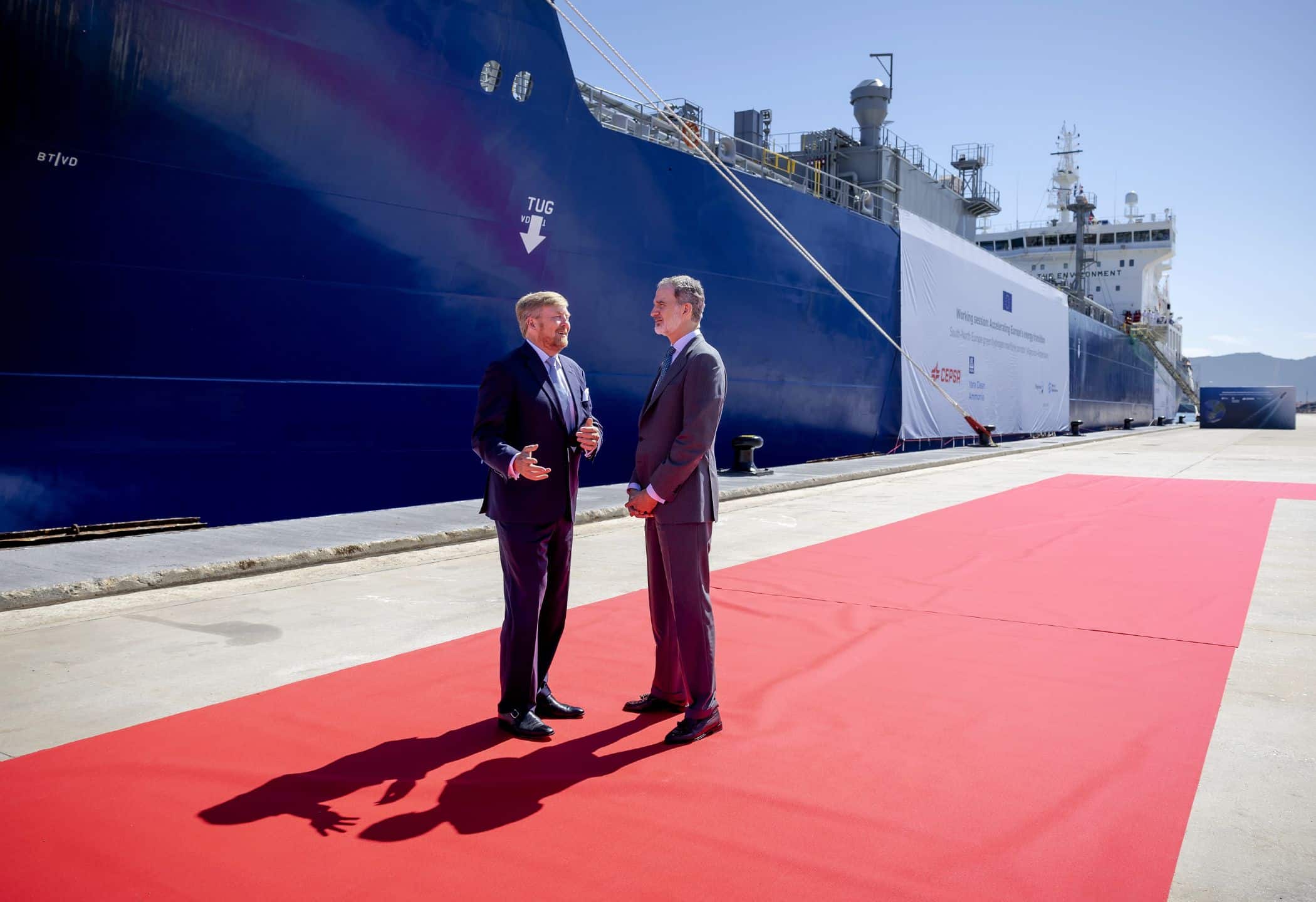 Zo‘n veertig Spaanse fotografen en journalisten stonden de twee vorsten op te wachten in de haven van de Spaanse stad.