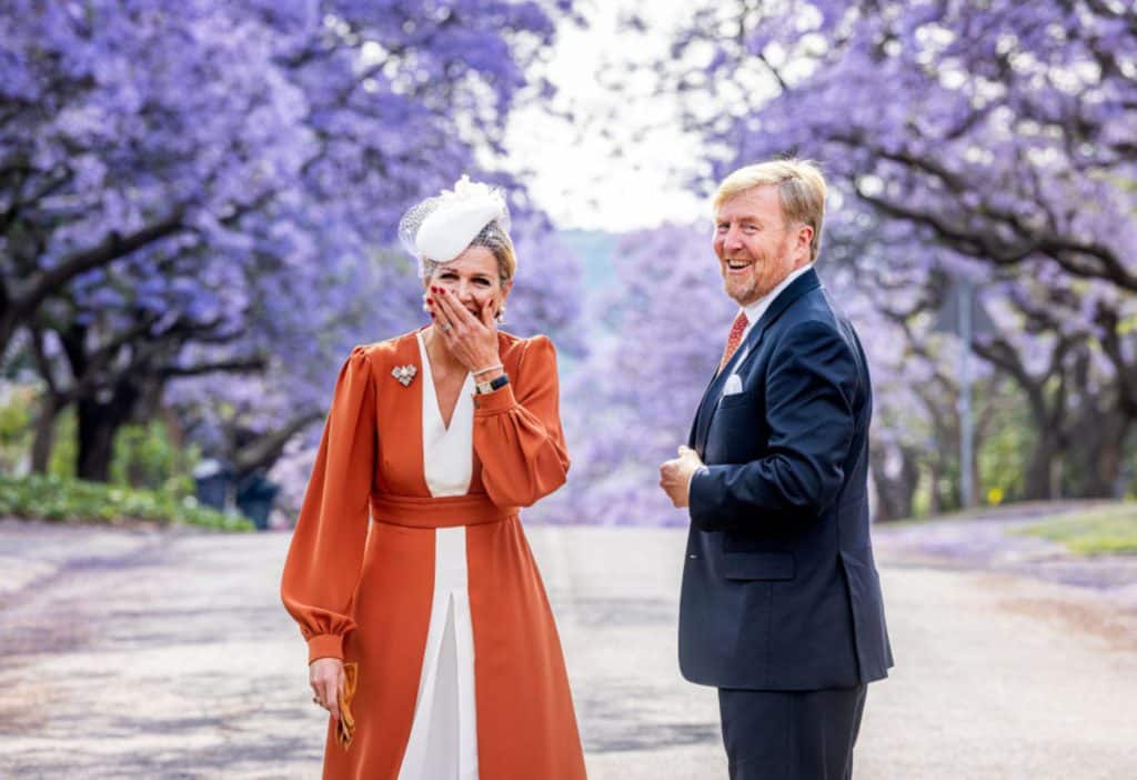 Wat een schaterlach heeft ze toch altijd, onze Maxima. Maar deze keer, op staatsbezoek in Zuid-Afrika moest ze wel heel hard lachen. Tegen een achtergrond van prachtige bomen in volle bloei en een net zo hard lachende koning Willem Alexander naast haar is dit nu al onze lievelings foto!