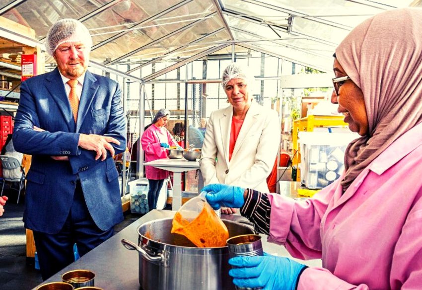 Het Oranje Fonds ondersteunt de stichting bij het verbeteren en verduurzamen van hun organisatie en helpt met coaching en taallessen van de deelnemers. Vandaar dat Willem-Alexander graag even een kijkje kwam nemen.