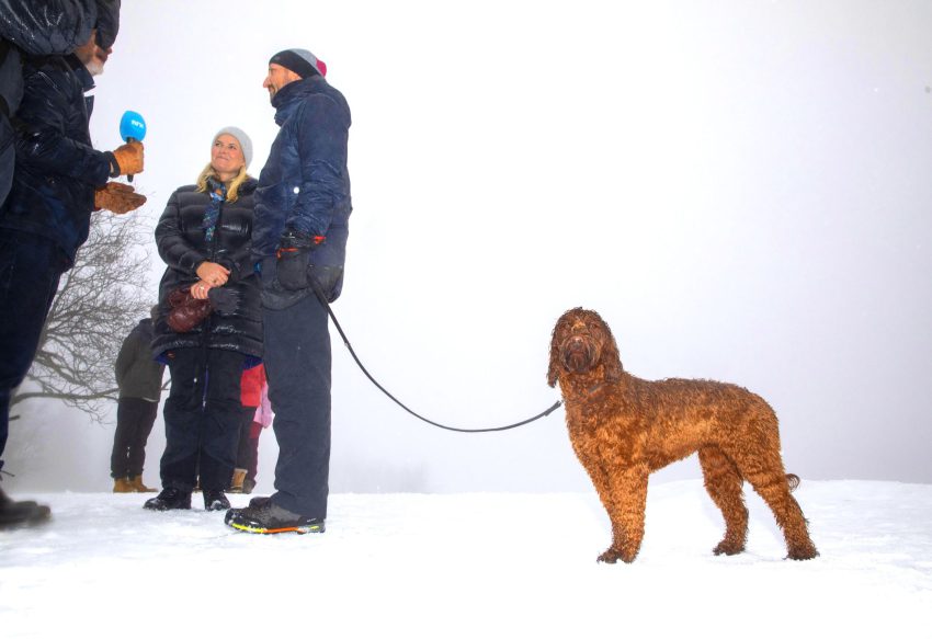 De familiehond van Mette-Marit en Haakon mocht ook mee naar de scouting in de sneeuw en het ijs, en vermaakte zich prima.