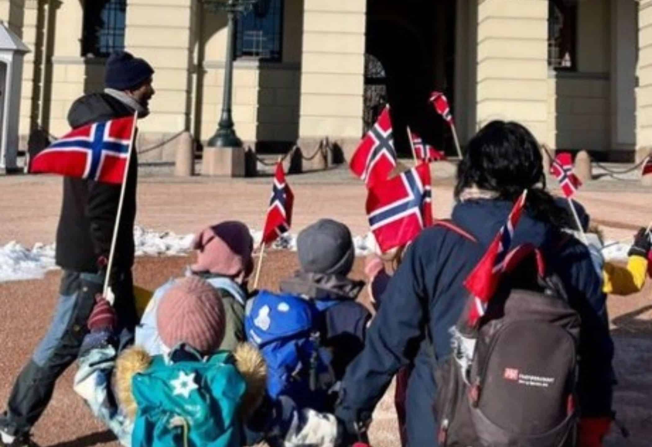 Het hele land viert feest als de koning verjaart. Voor een groep schoolkinderen was dat niet genoeg. Ze trokken zelf naar het paleis, met verjaardagskaarten voor Harald.