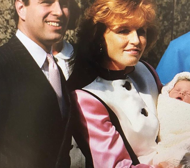 En omdat Sarah Ferguson en haar jongste dochter Eugenie zo dol zijn op het delen van throwbacks, hierbij een ‘foto van toen’. Een jonge Sarah en een jonge Andrew met een piepjonge Eugenie.