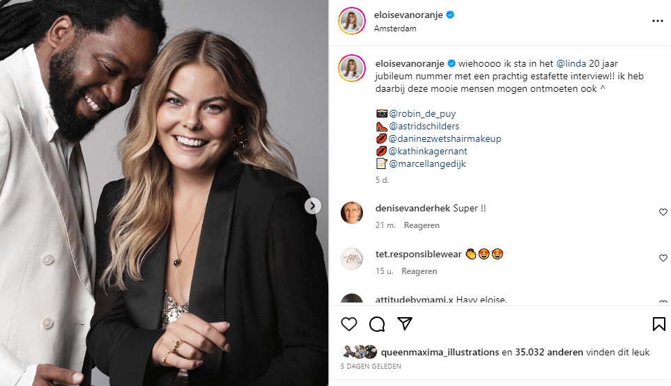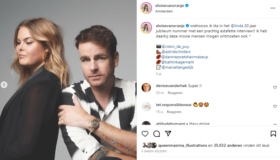 Ook de moeder van ’s lands bekendste (en enige) gravinfluencer kreeg een plek in Linda. Dat gebeurde in 2021, een interview met prachtige foto’s. Laurentien was er enorm openhartig over onder meer haar huwelijk en kinderen. Ze vertelde dat ze zich vroeger nooit ‘het mooiste meisje van de klas’ heeft gevoeld. En is zich ervan bewust dat zij in een ander tijdperk leeft dan, bijvoorbeeld, social media-dochter Eloise.