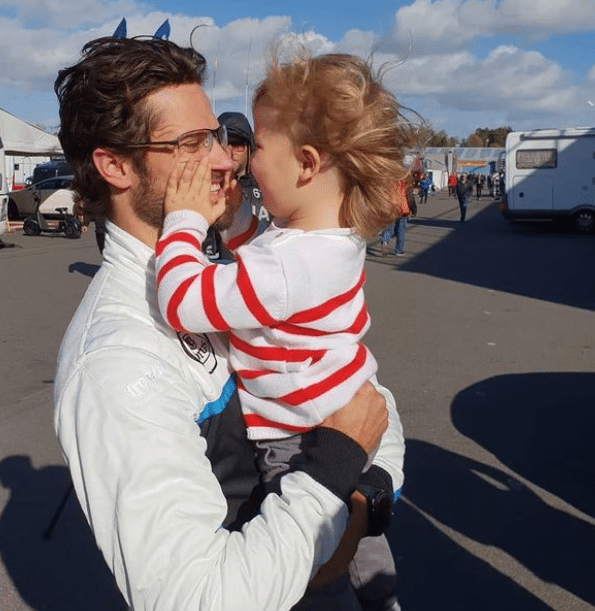Prins Carl Philip heeft zelfs 3 zoons. Hier zien we hem met oudste zoon Alexander. Die is blij zijn vader weer te zien na een autoracewedstrijd.