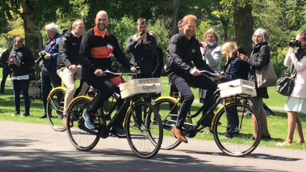 Prins Harry was in Nederland om zijn Invictus Games voor te bereiden en te promoten. De Spelen, in Den Haag, gingen niet door vanwege corona. Maar we hebben toch maar mooi deze foto van een fietsende Harry!