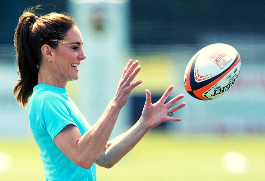 De prinses van Wales was op bezoek bij haar lokale rugbyclub – en deed uiteraard weer fanatiek en deskundig mee.
