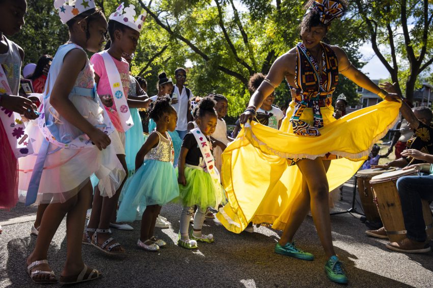 Kleine gekleurde meisjes uit de stad en omgeving die dromen van een prinsessenbestaan kunnen die droom één dag waarmaken, en dat levert dit prachtige beeld op.