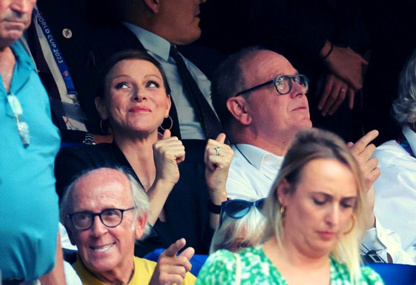 Het was goed duidelijk welk team prinses Charlene aanmoedigde. Ze stak twee duimen op toen de Springboks, het Zuid-Afrikaanse team, een belangrijk punt scoorden.