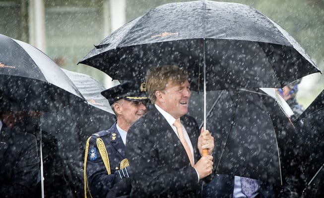 Het is natuurlijk wel zo dat de meeste royals aardig wat tijd besteden aan hun kapsels en kleding. Niet zo gek dus, dat je op een regendag weleens een foto ziet van een royal die ‘begeleid’ wordt door een parapludrager, vaak een assistent of beveiliger. Maar er zijn ook genoeg voorbeelden van werkbezoeken, lintje-knip-ceremonies en bordesscènes waarbij het nat was en alle deelnemers simpelweg nat werden. Gelukkig zijn ze niet van suiker.