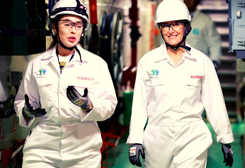 Benedendeks kan het vooral in de machinekamer nogal vies zijn, dus trok ze een overall aan. Een witte nog wel. De verplichte veiligheidshelm maakte het plaatje van een working royal compleet.