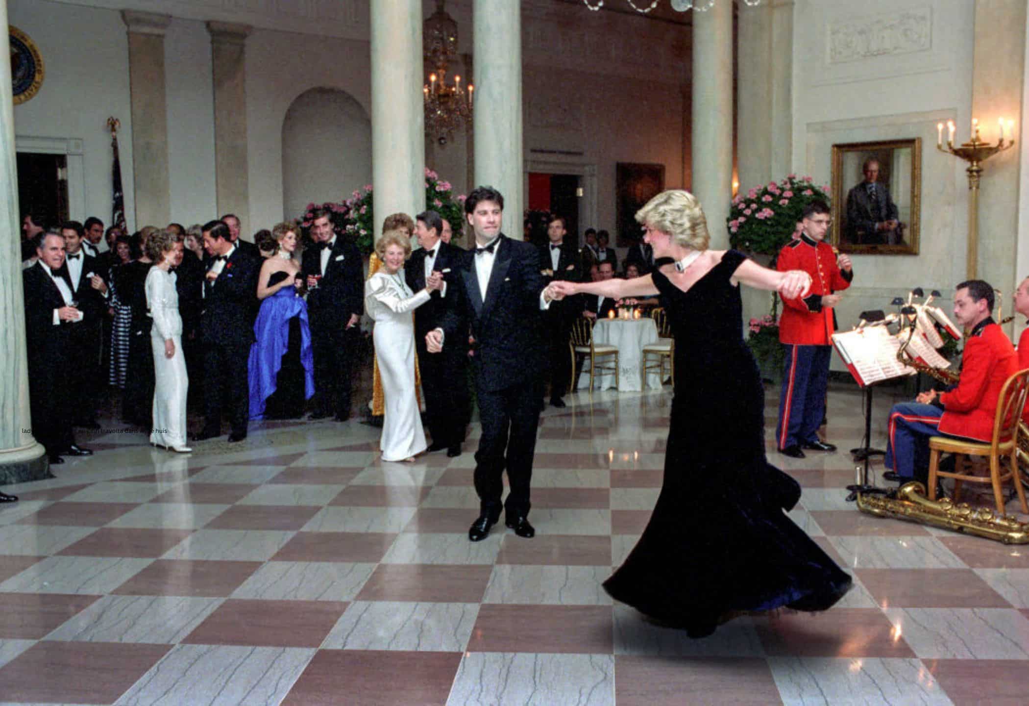 Maar liefst twintig minuten lang dansten Diana Spencer en John Travolta in de feestzaal van het Witte Huis. Ze dansten onder andere op de muziek uit Saturday Night Fever en Grease. De twee hitfilms uit die tijd met John Travolta in de hoofdrol. In de memoires van Tom Selleck staat dat een medewerker van de koninklijke familie – die hij niet bij naam noemt – op Tom Selleck af stapte. Deze medewerker zou aan Tom Selleck hebben gevraagd om Diana uit de armen van John Travolta te ‘redden’ en met haar te dansen.